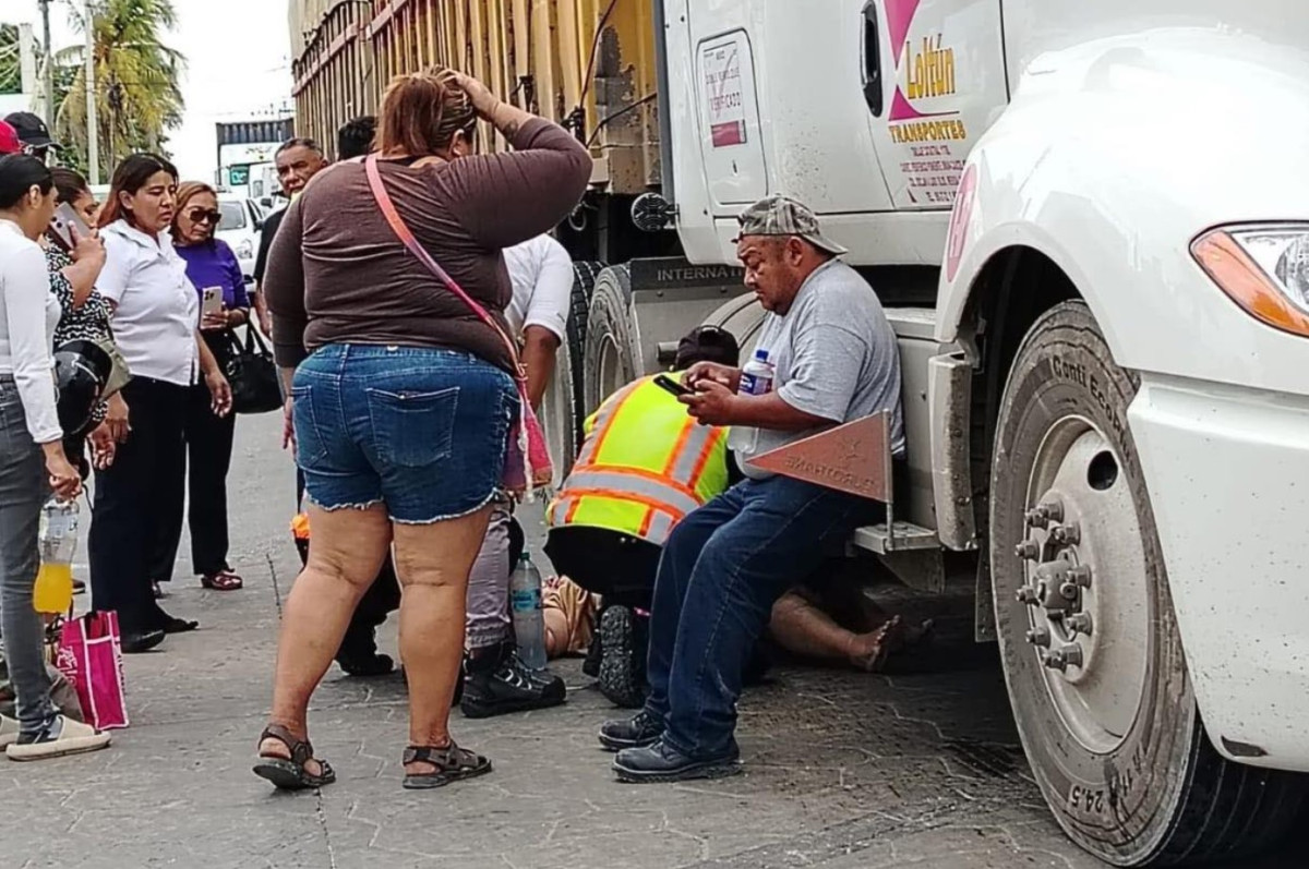 PROGRESO – Norma Cuevas Casanova, a resident of this port city, experienced terrifying moments Thursday morning when she was struck by a Loltún company truck in the problematic area where heavy trucks are diverted by municipal authorities. The brutal accident occurred around 10:00 a.m. at the dangerous intersection of 78th Street and 25th Street, which has been designated as an alternate route for cargo trucks heading to the deep-water port since 2024.