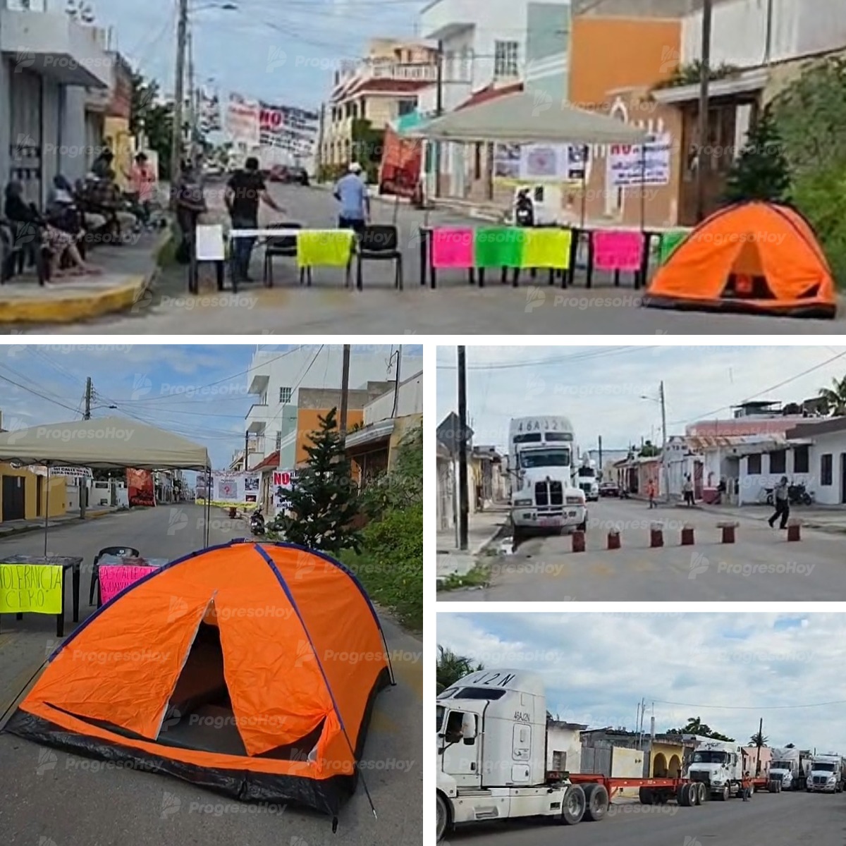 PROGRESO – As anticipated, residents of this port city blocked 25th Street at the intersection with 62nd Street at 8:00 a.m. this Tuesday to protest the passage of tractor-trailers through the city streets.